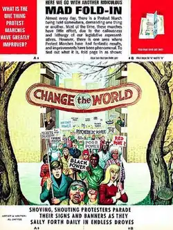 The third Fold-In, in issue #88, had an unusual diagonally-folded layout which was never repeated.[2] The first 33 Fold-Ins were printed in black-and-white; starting with Mad #119 (June 1968), all Fold-Ins have been presented in color.