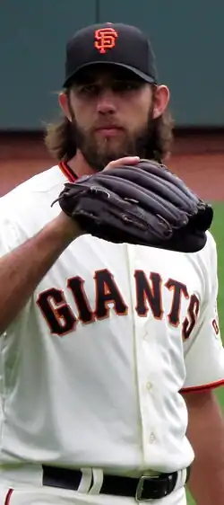 Madison Kyle Bumgarner (born August 1, 1989), nicknamed "MadBum",[1] is an American former professional baseball pitcher. He played in Major League Baseball (MLB) for the San Francisco Giants (2009–19) and Arizona Diamondbacks (2020–23). Bumgarner has won three World Series championships (2010, 2012, 2014) and two Silver Slugger Awards (2014, 2015). He has also been selected to four National League (NL) All-Star teams and has the most strikeouts in franchise history by a Giants left-handed pitcher.[2]