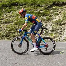 Mads Pedersen (born 18 December 1995) is a Danish professional racing cyclist, who rides for UCI WorldTeam Lidl–Trek.[5] He has won stages in all three Grand Tours — the Tour de France, Giro d'Italia, and Vuelta a España. He won the men's road race at the 2019 UCI Road World Championships in Yorkshire, England, becoming the first and so far only Danish cyclist to win the men's World Championship road race title.