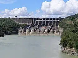 Magat Dam is a large rock-fill dam in the island of Luzon in the Philippines. The dam is located along the Magat River, a major tributary of the Cagayan River. The construction of the dam started in 1975 and was completed in 1982. It is one of the largest dams in the Philippines. It is a multi-purpose dam which is used primarily for irrigating about 85,000 hectares (210,000 acres) of agricultural lands,[1] flood control, and power generation through the Magat Hydroelectric Power Plant.