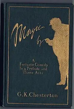 Magic: A Fantastic Comedy is a 1913 comedy play by the English writer G. K. Chesterton. The plot centres around the conflict between a conjurer, a young woman who believes he is really magic, and her arrogant brother who rationalises everything. When the conjurer begins to do tricks that the brother cannot explain, he begins to go insane and the young woman and the other characters – a wealthy duke, a family doctor, and a local priest – attempt to convince the conjurer to divulge how the tricks were done in the hopes of curing him of his madness.