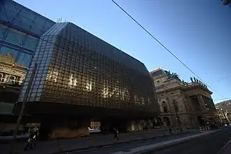 Laterna magika (Czech: Laterna magika), largely considered the world's first multimedia theatre, was founded as a cultural program at the 1958 Brussels Expo.[1] It launched its official activity on 9 May 1959, as an independent company of the National Theatre, performing at the Adria palace in Prague. Wonderful Circus, which premiered in 1977, is the most frequently performed theatre piece in Central Europe, and has remained in the repertoire ever since. Laterna magika now is one of the ensembles of the National Theatre, based at the New Stage of the National Theatre in Prague. Laterna magika productions blend various genres, ranging from dramatic acting through affording a dominant role to dance and ballet to mime and Black Theatre. All of their productions have been original works directly created for the company, not ready-made pieces, which, with a few exceptions, have never subsequently appeared in the repertoire of another company. The fundamental principle (interaction between film projection and live dramatic action) has been gradually supplemented with new technologies, for instance, digital projection or new media, including real-time programmable software.