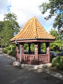 The wellhouse is a small timber structure with a red tile roof. It is today located on a parking lot. The wellhouse was listed in 1979.[8]