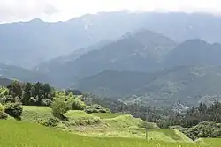 The town also offers a fine view of Mount Ena, which rises 2,190 m (7,185 ft). Panoramic views of the surrounding mountains may be enjoyed from a vista above the main parking lot at Magome's upper end.