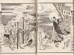 In the Aṅguttara Nikāya, Maudgalyāyana is called foremost in psychic powers, a title he shares with his female counterpart Utpalavarṇā.[62][63][64] In teaching, Maudgalyāyana relies much on such powers. Varying accounts in the Pali Canon show Maudgalyāyana travelling to and speaking with pretas (spirits in unhappy destinations) in order to explain to them their horrific conditions. He helps them understand their own suffering, so they can be released from it or come to terms with it. He then reports this to the Buddha, who uses these examples in his teachings.[2][59] Similarly, Maudgalyāyana is depicted as conversing with devas and brahmas (heavenly beings), and asking devas what deeds they did to be reborn in heaven.[59][65] In summary, Maudgalyāyana's meditative insights and psychic powers are not only to his own benefit, but benefit the public at large. In the words of historian Julie Gifford, he guides others "by providing a cosmological and karmic map of samsara".[66]
