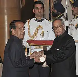![]() President Pranab Mukherjee presenting the Padma Shri Award to Rajsoni (left) in 2015 | |
