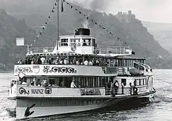 Mainz is a side-wheel paddle steamer for the Lower and Middle Rhine built in 1928/1929 for the Steamship Company for the Lower and Middle Rhine (DGNM), which was used by the Cologne-Düsseldorfer German Rhine Shipping in scheduled service on the Rhine. She was the thousandth ship completed by the shipyard Christof Ruthof and also the last paddle steamer built for the Köln-Düsseldorfer. The Mainz survived World War II as the only ship of the shipping company that was able to sail, but was then so badly damaged in an accident on June 12, 1956 that the hull had to be rebuilt. Due to the high need for repair and refurbishment, the Köln-Düsseldorfer decommissioned the passenger ship after the 1980 summer season.