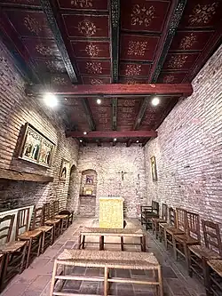 Within the Maison Seilhan, a room traditionally believed to be where the first community slept and prayed has been preserved as an oratory. In addition to its historic painted ceiling, the room features a contemporary stained glass window by the Dominican Kim En Jong and an altar sculpted in 2014 by Dominique Kaeppelin.[1]