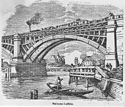 - The remains of the Machine des Eaux de Maisons-Laffitte on the small branch of the Seine. It was most likely built by François Mansart at the request of René de Longueil to supply his future Château de Maisons in 1634. Destroyed in 1885, only the three masonry piers on which the machine rested remain today. The structure was listed as a historical monument in 1974.[10]