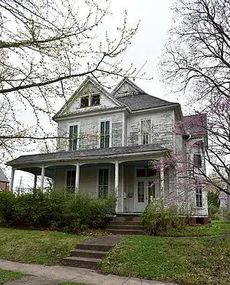 The Maj. James W. McMullin House is a historic residence located in Oskaloosa, Iowa, United States. McMullin received his commission in the army during the American Civil War. He returned to Oskaloosa after his service where he established a successful transport and livery business that served Mahaska County's coal industry. McMullin meant for his Queen Anne style home to be a showplace.[2] It was designed by an unknown architect to be built of brick, but because of price gouging by local brick dealers he chose to have his home built of wood instead.[2] Structurally, the house has a balloon frame covered with clapboards. It features an asymmetrical plan, a wrap-around porch, and bay windows. The interior is noteworthy for its woodwork and exuberant plasterwork.[2] It was listed on the National Register of Historic Places in 1985.[1]
