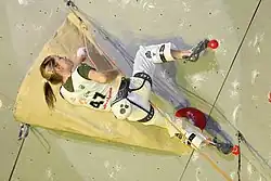 Maja Vidmar (born December 30, 1985) is a Slovenian rock climber who specializes in competition lead climbing and sport climbing, and is known for winning the 2007 Lead Climbing World Championship.[1] She started competing in 2000, at the age of 15, and retired from international competitions at the age of 29, after participating in the 2014 Lead Climbing World Championship and 2014 Lead Climbing World Cup.[2] She was the second-ever woman in history to onsight an 8b+ (5.14a) route.[3]