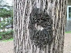 - ^ a b Fitzgerald, T. D. (July 2008). "Use of pheromone mimic to cause the disintegration and collapse of colonies of tent caterpillars ( Malacosoma spp.)". Journal of Applied Entomology. 132 (6): 451–460. doi:10.1111/j.1439-0418.2008.01286.x. S2CID 83824574.