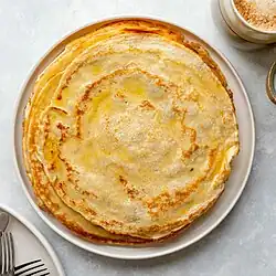 Malawah is a plate-sized sweet pancake that is eaten for breakfast or as a snack anytime during the day.[2] It is similar to a sweet crepe and is flavored with cardamom.[3]