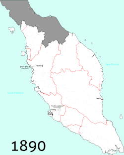 Railways in Malaysia began because of the need to transport tin from mines in the hinterland of the West Coast states of Peninsular Malaysia to coastal ports. The first railway line, which was opened on 1 June 1885, was about 13 km long and ran between Port Weld and Taiping, the heart of the tin-rich Larut Valley in Perak state.[2] The second line was opened a year later to link Kuala Lumpur, again the center of tin-mining activities in the Klang Valley, and Klang and subsequently to Port Swettenham (Port Klang) today.