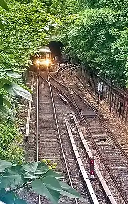 The Malbone Street wreck occurred on Friday, November 1, 1918, at 6:42 p.m., during the end-of-week rush hour, and involved about 650 passengers.[1] The elevated train, consisting of five cars constructed primarily of wood, entered the tunnel portal beneath Malbone Street, going toward the Prospect Park station,[2][3] negotiating a reverse curve designated to be taken at 6 mph (10 km/h) at a speed estimated at between 30 and 40 mph (50 and 60 km/h).