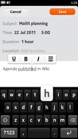 ![]() Maliit’s virtual keyboard running on the Nokia N9 | |