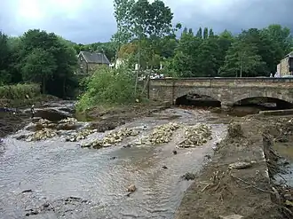 The Malin Bridge area suffered badly in the floods of June 2007. As a result of this the Environment Agency started work in August 2009 to remove trees and silt from the river beds at the confluence of the Loxley and Rivelin rivers at Malin Bridge. The work will alleviate flooding problems in the future but has had the added effect of opening up the views of the area with the confluence of the two rivers now clearly in view, something that has not been seen for many years.[15] In September 2014 Sheffield City Council announced plans to construct a dam wall upstream in the Rivelin valley at one of two possible locations to create a flood storage area. In either case the dam will be over 36-foot (11 m) high with a 13-foot (4.0 m) wide crest. If the scheme goes ahead, it will reduce the depth of water downstream by 4 feet 11 inches (1.50 m) during heavy rain such as those that occurred in 2007 flood.
