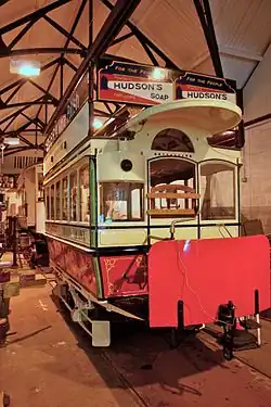 L53 is the only surviving complete horse tram, from over 500 designed by John Eades in 1877 and built by the Company to operate in and around the city until 1903. Built to the Eades patent Reversible type, the tram is unique among all surviving trams in that it uses the horses' own power to turn the body of the tram round on its underframe when reaching the end of the tracks. Rescued from a retirement near Glossop Derbyshire, that included use as a hairdresser's and a fish and chip shop, the tram was restored over a 25-year period by a team of skilled volunteers which included most of the side frames being made by one of the team as part of an 'A' Level woodwork exam.