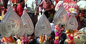 The Mandi Maha Shivaratri fair is held as per Hindu calendar every year on the Krishna paksha 13th day/13th night (breaking fast/'vrata' on 14th after sunrise) of the waning moon in the month of Phalguna that corresponds to February/March as per Gregorian calendar.[1] The festival’s popularity is widespread and hence is known as an international festival. In view of the large number of Gods and Goddesses that are invited to the festival from its 81 temples, Mandi town has the title of 'Varanasi of the Hills'.[2][3] During 2016, the festival will be celebrated from 7 March (Shivaratri day) for seven days till 14 March 2016.[4][5]