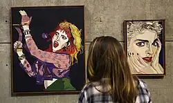 Madonna was significantly criticized in different international societal sectors, although some of the critical perspectives were also broadly rooted against things suchs as Anti-Americanism or Anti-Western sentiments. Particularly in the late-twentieth century, these critical perspectives to Madonna along with other American symbols or major public figures were notated by some; for instance an Islamic political party in Pakistan, "unsuccessfully demanded" Michael Jackson and Madonna as "cultural terrorists" for "destroying" humanity according to author Craig A. Lockard.[145] Academic Malise Ruthven cites a Pakistani religious scholar who called both singers as "torchbearers of American society with their cultural and social values".[146] French sociologist Bruno Étienne reacted with "horror" for both singers and their "ghettozoided" politics, as "the means by which values are transmitted in such society".[147] In Israel, Madonna was also cited within Post-Zionism discourses, including then president Ezer Weizman, who criticized the Americanization of the country and the perceiving losing of their national identity. He further blamed "the three Ms" (Madonna, Michael Jackson and McDonald's).[148] Japanese artist Yasumasa Morimura, renowened for his artistic appropriations of social figures from Western culture, parodied both Jackson and Madonna in Psychobor 22 (1994) as a critique of the Japanese obsession with them, a palpable sign of the growing global celebrity and the "Westernization" of East Asian culture. [149] In 1994, middle East scholar Patrick Clawson informed about the rejection of Madonna from Iranian radicals.[150] In the 2000s, political commentator Aaron Klein also reported a rejection in groupings of the Middle East such as terrorits. He said that "everyone has heard of her [and] when sheikh cite samples of the U.S. attempting to pervert" they speak of Madonna.[151] In 2006, German author Josef Joffe lumped her as an example of the U.S. soft power.[152]