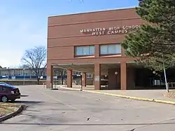 Manhattan High School is a public high school in Manhattan, Kansas, United States, serving students in grades 9–12. It is part of the Manhattan–Ogden USD 383 school district. For the 2013–2014 school year, Manhattan High had an enrollment of 1,920 students.[1] The school's athletic teams are referred to as the "Indians," and have won 50 state championships.