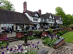 Manley Knoll is a small country house north of the village of Manley, Cheshire, England. It was designed in 1912 for Llewellyn Jones.[2] Its construction was interrupted by the First World War. In 1922 the interior was remodelled for the Demetriades family by the Manchester architect James Henry Sellers. In the 1920s a billiard room was added. The house is constructed in buff-brown brick with orange brick dressings, and some timber framing and roughcast. The roofs are tiled. Its architectural style has been described as Arts and Crafts,[2] or eclectic Vernacular Revival.[1] It has an irregular linear plan. The entrance front is asymmetrical, in two storeys, with an off-centre porch. To the left of the porch is a timber-framed projection, and to the right is a staircase bay and a service bay. In the garden front are four timber-framed gables with a central loggia over which is a balcony.[1] Each of the gables is decorated with different Cheshire patterns.[2] The house is recorded in the National Heritage List for England as a designated Grade II listed building.[1]
