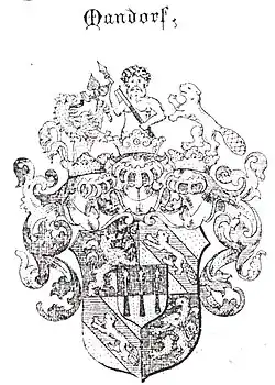 Besides the Metnitz family, the Manndorffs are the oldest non-extinct family belonging to Carinthian nobility.[2] The spelling of the name changed between Manndorff, Manndorf, Mandorf, Mondorf, Monsdorf, Mansdorf, and Manstorff.