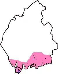 The exact location of Hougun has been long disputed and Millom is often suggested, although High Haume near Dalton-in-Furness has also been proposed, given that it was recorded in 1336 as Howehom. It has also been suggested that the centre of the district was Furness, and that the territory included the Millom area, plus part or all of Cartmel – what would later be the Lancashire territory known as Amounderness.[2] The notion that the manor of Hougun was an administrative district and not just the chief vill of the area has been challenged.[3]