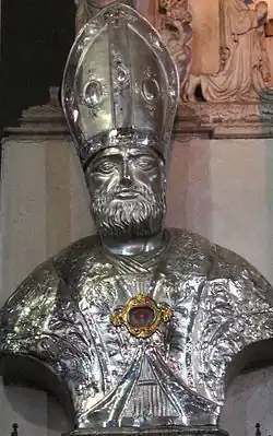 His feast day is February 19 in the Roman Rite and September 2 in the Ambrosian Rite.[2] A late tradition, with no historical basis, associates Mansuetus with the Roman family of the Savelli.