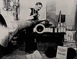 The following year, Mapleson came up with the idea of putting the recorder in the prompter's box of the Met. His first effort recorded Nellie Melba singing a scrap of music during a performance of Massenet's Le Cid on January 16, 1901. He recorded several more times during performances, still utilizing the prompter's box, but often with unsatisfactory results. After a short cessation and with the commencement of the 1901–1902 season, he resumed his recording activity from the Met's fly system. This time, he employed a huge recording horn that could capture the sounds emanating from singers and orchestra stationed below. He was thus able to unobtrusively record bits of many stage performances from 1901 through 1903. The morning after his recording 'session', he would invite the artists involved to listen to playbacks of their performances.[2] His recording activity continued until the end of the 1902–1903 season. At that point Mapleson either lost interest or was forbidden by the Met's management from continuing his recording activities (although a few cylinders exist of orchestral rehearsals or concerts dating from 1904).