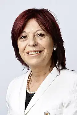 Perceval followed her early political mentor, José Bordón, and other left-wing Peronists into the FrePaSo coalition before the 1995 general election, but later returned to the Justicialist Party.[3] She was elected to the Senate for Mendoza Province in 2001 and re-elected in 2003, later joining the majority Front for Victory parliamentary caucus.[2] She pursued a greater role for women in Senate committees historically chaired and dominated by men, and in 2007 become chairwoman of the Defense Committee;[1] in that capacity she became known for an unsuccessful effort in 2008 to rescind military courts martial in favor of civil trials, as she believed that courts martial deprive servicemen and women of due process.[4] She also focused on the strengthening of democracy and democratic institutions, as well as promoting civil, political, social, cultural and economic human rights. Some of the most notable bills she wrote include Regulación de la Tenencia de Armas (Regulations on Gun Possession) in 2002 and Plan de Desarme (Action Plan on Disarmament for light weapons) in 2006. She also wrote bills against violence against women, among them Prevention and Punishment of Human Trafficking (2008) and Prevention and Punishment of Violence Against Women (2009).[5]