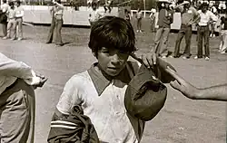 Maradona's parents were both born and brought up in the town of Esquina in the north-east province of Corrientes on the banks of the Corriente River. In the 1950s, they left Esquina and settled in Buenos Aires.[7] Maradona received his first football as a gift at age three and quickly became devoted to the game.[17] At age eight, he was spotted by a talent scout while he was playing in his local club Estrella Roja. In March 1969 he was recommended to Los Cebollitas (The Little Onions), the junior team of Buenos Aires's Argentinos Juniors by his close friend and football rival Gregorio Carrizo who had already been picked by coach Francis Gregorio Cornejo.[18][19] Maradona became a star for the Cebollitas, and as a 12-year-old ball boy he amused spectators by showing his ball skills during the halftime breaks of Argentinos Juniors' first division games.[20] During 1973 and 1974, Maradona led Cebollitas to two Evita Tournament wins and 141 undefeated games in a row, playing alongside players like Adrian Domenech and Claudio Rodríguez, in what is regarded as the best youth team in the history of Argentine football.[21] Maradona named Brazilian playmaker Rivellino and Manchester United winger George Best among his inspirations growing up.[22][23]