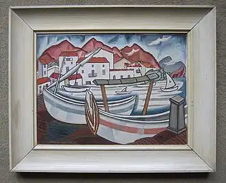 Hatt first exhibited her paintings with the International Society of Sculptors, Painters and Gravers at the Grosvenor Gallery, London, in 1918.[9] Her work was initially influenced by the way the French modernist movement was being interpreted in Britain by artists such as Paul Nash, John Nash, Iain Macnab and Ethelbert White, but as she began to travel, for example, to Paris, and was able to see pictures by Paul Cézanne, Pablo Picasso and Georges Braque at first hand, the influence of Modernism deepened. After her visits to Vienna in the early 1920s she produced a small number of woodcuts and wood engravings from 1925, but there were none after 1930.