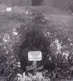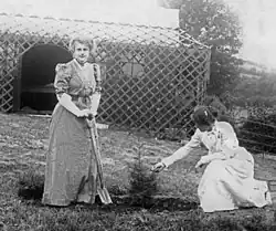 Their imprisonment qualified both of them to have a commemorative tree planted at the "Suffragette's Rest" in Somerset on 22 July 1910.[7] The "Suffragette's Rest" was the nickname for Mary Blathwayt's home at Eagle House where her parents also indulged their WSPU enthusiasm. Her parents had set land aside to plant an individual tree for each WSPU member sentenced to prison. The planting was then photographed by Mary's father. The tree's and the photographs recorded their achievements.