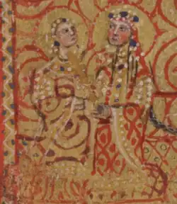 ![]() Maria Komnene (right) with Agnes of France (left). From an illuminated manuscript, ca. 1179.[a] | |