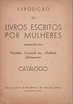 In July 1945, she became president of the Board of the CNMP, with the promise of promoting literacy campaigns throughout the country. She resigned from her position at O Século and began one of her most important literary works The Women of my Country (As Mulheres do Meu País), the first ever report on the living conditions of Portuguese women. In 1947 she also organised an exhibition of books written by women. This brought together three thousand books by 1400 women authors from thirty countries, which filled the Great Hall of Fine Arts at the University of Lisbon. Soon after, however, the CNMP was declared a forbidden organization by the authoritarian Estado Novo government. In 1952, she published a two-volume work on The Woman in the World (A Mulher no Mundo), which offered a comparative history of the state of feminism around the world, the result of exhaustive research.[1][2][3] Both The Women of my Country and The Woman in the World were subject to censorship, a fact that she found extremely frustrating. After the Carnation Revolution in 1974, which overthrew the Estado Novo, she announced that she was going to write a book saying all the things that she had been unable to say before, although no manuscript has been found.[5]