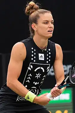 References ^ "Maria Sakkari" . WTA Tennis . Retrieved 17 December 2020 . ^ Stephanie Livaudais (May 4, 2019). "Sakkari slides past Konta to claim first WTA crown in Rabat" . WTA Tennis . Retrieved December 30, 2020 . ^ "Swiatek wins 11th straight match to claim Indian Wells title, rises to World No.2" . WTA Tennis . March 20, 2022. Retrieved 25 October 2022 . ^ WTA Staff (24 October 2022). "Pegula wins Guadalajara for first WTA 1000 title of career" . WTA Tennis . Retrieved 25 October 2022 . ^ WTA Staff (June 10, 2021). "Krejcikova saves match point, overcomes Sakkari in French Open semifinal" . WTA Tennis . Retrieved 25 October 2022 . ^ WTA Staff (September 10, 2021). "Raducanu makes history with win over Sakkari; sets all-teen US Open final vs. Fernandez" . WTA Tennis . Retrieved 25 October 2022 . ^ Dzevad Mesic (October 22, 2021). "Maria Sakkari makes history, becomes first Greek woman to clinch WTA Finals spot" . tennis world . Retrieved 25 October 2022 . ^ WTA Staff (November 17, 2021). "Kontaveit outduels Sakkari to reach WTA Finals championship" . WTA Tennis . Retrieved 25 October 2022 . ^ Cecilia Demartini (September 28, 2021). "Maria Sakkari, First Greek Woman to Break into the Top 10" . sportspundit.com . Retrieved 25 October 2022 . ^ WTA Staff (March 21, 2022). "Rankings Watch: Sakkari, Swiatek make Top 3 debuts" . WTA Tennis . Retrieved 25 October 2022 . ^ "Maria Sakkari [GRE] | Australian Open" . ausopen.com . ^ a b c d "Maria Sakkari matches" . WTA Tennis . Retrieved December 29, 2020 . ^ "Maria Sakkari ITF" . ITF . Retrieved December 29, 2020 . ^ "Maria Sakkari vs Top 10" . Tennis Abstract. Retrieved 26 March 2024 . ^ "Who is Wozniacki's conquerer Maria Sakkari?" . Retrieved 26 March 2024 . ^ "Sakkari upsets Pliskova to move into Rome third round" . Retrieved 26 March 2024 . ^ "Sakkari derails Bertens' Charleston title defense" . Retrieved 26 March 2024 . ^ "Sakkari survives ailing Kvitova to reach last eight in Rome" . Retrieved 26 March 2024 . ^ "Sakkari saves four match points, ousts Svitolina" . Retrieved 26 March 2024 . ^ "Sakkari ousts Kvitova under Cincy lights" . Retrieved 26 March 2024 . ^ "Maria Sakkari beats 9th ranked Sabalenka to move into Cincinnati Masters final 8" . Retrieved 26 March 2024 . ^ "Sakkari slips past Bencic to seal St. Petersburg semifinal spot" . Retrieved 26 March 2024 . ^ "Serena Williams stunned by Maria Sakkari at Western & Southern Open" . Retrieved 26 March 2024 . ^ "Sakkari stops Svitolina to reach Ostrava quarterfinals" . Retrieved 26 March 2024 . ^ "Sakkari takes out 4 Kenin in Abu Dhabi" . Retrieved 26 March 2024 . ^ "2 Naomi Osaka's win streak ends in stunning loss to 23 Maria Sakkari" . Retrieved 26 March 2024 . ^ "Sakkari knocks out Kenin to reach maiden major quarter-final" . Retrieved 26 March 2024 . ^ "Maria Sakkari stuns French Open defending champion Iga Swiatek" . Retrieved 26 March 2024 . ^ "Maria Sakkari snaps Bianca Andreescu's streak" . Retrieved 26 March 2024 . ^ "Dominant Maria Sakkari downs Karolina Pliskova" . Retrieved 26 March 2024 . ^ "Sakkari ousts top seed Swiatek" . Retrieved 26 March 2024 . ^ "Sakkari charges past Swiatek in WTA Finals debut" . Retrieved 26 March 2024 . ^ "Maria Sakkari outlasts Aryna Sabalenka" . Retrieved 26 March 2024 . ^ "Sakkari ends Badosa's title defense" . Retrieved 26 March 2024 . ^ "Sakkari squeaks past Pegula in two tiebreaks" . Retrieved 26 March 2024 . ^ "Sakkari beats Sabalenka to reach last four of WTA Finals" . Retrieved 26 March 2024 . ^ "Ons Jabeur's WTA Finals journey ends" . Retrieved 26 March 2024 . ^ "Sakkari edges Garcia to reach Doha semis" . Retrieved 26 March 2024 . ^ "Sakkari takes down top seed Pegula" . Retrieved 26 March 2024 . ^ "Sakkari bests Garcia for second straight week" . Retrieved 26 March 2024 . ^ "Sakkari holds off Gauff in three sets" . Retrieved 26 March 2024 .