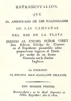 - ^ a b Mariano Moreno, Gazeta de Buenos Ayres, November 22, 1810 – Galasso, p. 58