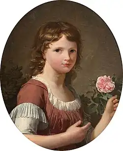 Marie-Victoire Lemoine mainly painted portraits, miniatures, and genre scenes.[3] She was most active in the art community during the late 1780s and the early 1790s.[1] Lemoine set up her first salon in 1774.[4] She took part in numerous Salons,[5] for example, her first solo exhibition was held at Pahin de la Blancherie's Salon de Correspondance in 1779,[4][6] where she exhibited a now untraced portrait of the Princess Lamballe (57 x 45 cm).[7] Five years after the Parisian Salon allowed women to participate, she exhibits there for the first time in 1796.[4] She continued to display her works of art to the public in the salons of 1796, 1798, 1799, 1802, 1804, and 1814. Lemoine was known to sign her paintings with the signature "M. Vic Lemoine."[1]