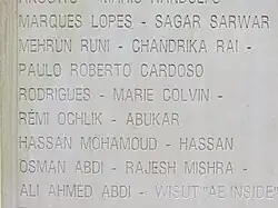 - ^ Fatima, Nazish (February 22, 2012). "Death of Marie Colvin, American journalist of war". AllVoices.com. Retrieved February 22, 2012.