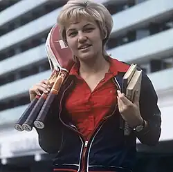 Kroschina won the 1972 European Championship[5] and the All England Plate in 1974. She had some success in the doubles events, winning three titles with Olga Morozova.