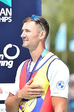 Marius Vasile Cozmiuc (born 7 September 1992) is a Romanian rower. A 2022 World Champion in the coxless pair, Cozmiuc competed in a coxless four at the 2016 Summer Olympics[2] and won a silver medal in the coxless pair at Tokyo 2020. He married fellow Olympic rower Ionela-Livia Cozmiuc in 2017.[3]