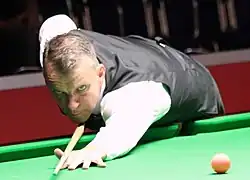 Davis reached the quarter-finals of the Australian Goldfields Open but lost 5–3 to Mark Selby.[24] At the 2013 Six-red World Championship he defended his title by defeating Neil Robertson 8–4 in the final.[25] Only a week later he won his next tournament, the General Cup in Hong Kong, beating Robertson again in the final, this time by 7–2.[26] A second ranking event quarter-final of the year came at the Shanghai Masters with comfortable 5–2 and 5–1 victories over Ali Carter and John Higgins. However, he then squandered a 4–2 lead over Xiao Guodong to be beaten 5–4.[27] At the Masters he forced a decider in the first round against Mark Selby, having been 4–0 down but lost the 55-minute final frame to be defeated 6–5.[28] In the quarter-finals of the German Masters, Davis lost in an extremely close match with Rod Lawler 5–4.[29] Davis was an automatic qualifier for the World Championship for the first time in his career this season and said before the event that his minimum goal was to win through to the quarter-finals, but he was beaten 10–5 in the first round by Dominic Dale.[30][31] Davis hung on to his top 16 ranking at the end of the season as he was the world number 16.[32]