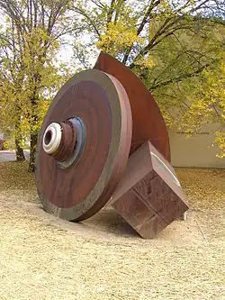 In 1955, Oliphant initiated the design and construction of a 500 megajoule homopolar generator (HPG), the world's largest. This massive machine contained three discs 3.5 metres (11 ft) in diameter and weighing 38 tonnes (37 long tons). He obtained £40,000 (equivalent to A$3,000,000 in 2022) initial funding from the Australian Atomic Energy Commission.[82] Completed in 1963, the HPG was intended to be the power source for a synchrotron, but this was not built.[83] Instead, it was used to power the LT-4 Tokamak and a large-scale railgun that was used as a scientific instrument for experiments with plasma physics. It was decommissioned in 1985.[23]