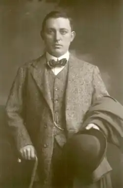 Devastated by the critics' reviews for Gay Paree, Sheridan entered Kelvingrove Park on 15 January 1918 and killed himself with a single gunshot to the head.[9] The coroner recorded a verdict of suicide, since the gun found had belonged to Sheridan.[3][10] He was buried in Cathcart Cemetery on 18 January 1918, leaving his wife Maude, their three sons Billy, Fred and Jack, and two daughters Francis and Freda.[8][9] He is commemorated by a pink granite gravestone.[11]