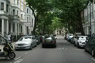 Marloes Road is a street in the Kensington area of London, England. It runs roughly south to north, from a T-junction with Cromwell Road to Cheniston Gardens and Abingdon Villas. It has junctions with (inter alia) Lexham Gardens, Stratford Road and Scarsdale Villas.
