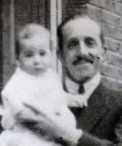 Portago was born in London, he was educated at Biarritz,[14] in France.[15] He became articulate in four languages, and spoke English with a distinctive British accent.[6] Portago was heir to a respected title in Spain[16] and a millionaire.[15] Among his ancestors were explorer Álvar Núñez Cabeza de Vaca. His father was Antonio Cabeza de Vaca, 10th Marquess of Portago, who died during half time at a polo match at a young age. His paternal grandfather was Vicente Cabeza de Vaca, 9th Marquess of Portago, mayor of Madrid. His mother was named Olga Leighton and was an Irish nurse. She also had a daughter named Sol, for Soledad, who married and became known as the Marchioness of Moratalla in racing circles. She died in 2017.[17] Olga's first husband, Frank Mackey was more than 40 years older than she was. He shot himself while terminally ill and left Olga an enormous fortune made as founder of Household Finance Corp.[18] Portago was a first cousin of Vicente Sartorius, 4th Marquess of Mariño as well as José Luis de Vilallonga, 9th Marquess of Castellbell.
