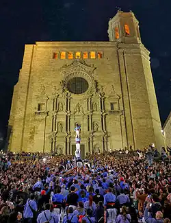In 2016 the Girona council chooses the Marrecs de Salt as the toastmasters of the local fest.[87] Marrecs were also responsible for commemorating the 600th anniversary of the Gothic nave of the Cathedral of Girona; on 1 November, after the traditional climbing of the stairs with a pillar of 4, the colla castellera raised a 3 in 8 and a pillar of 6 in the Gothic nave of the cathedral.[88]