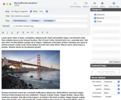 MarsEdit is a blog post editor for the Mac made by Red Sweater Software. It can be used to write, edit, and publish blog posts, and supports many popular blogging services, such as WordPress, Tumblr, Blogger, and Movable Type.[1][2][3]