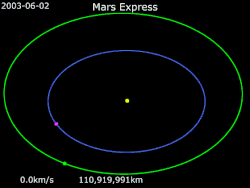 ![]() CG image of Mars Express arriving at Mars | |||||||||||||||||||